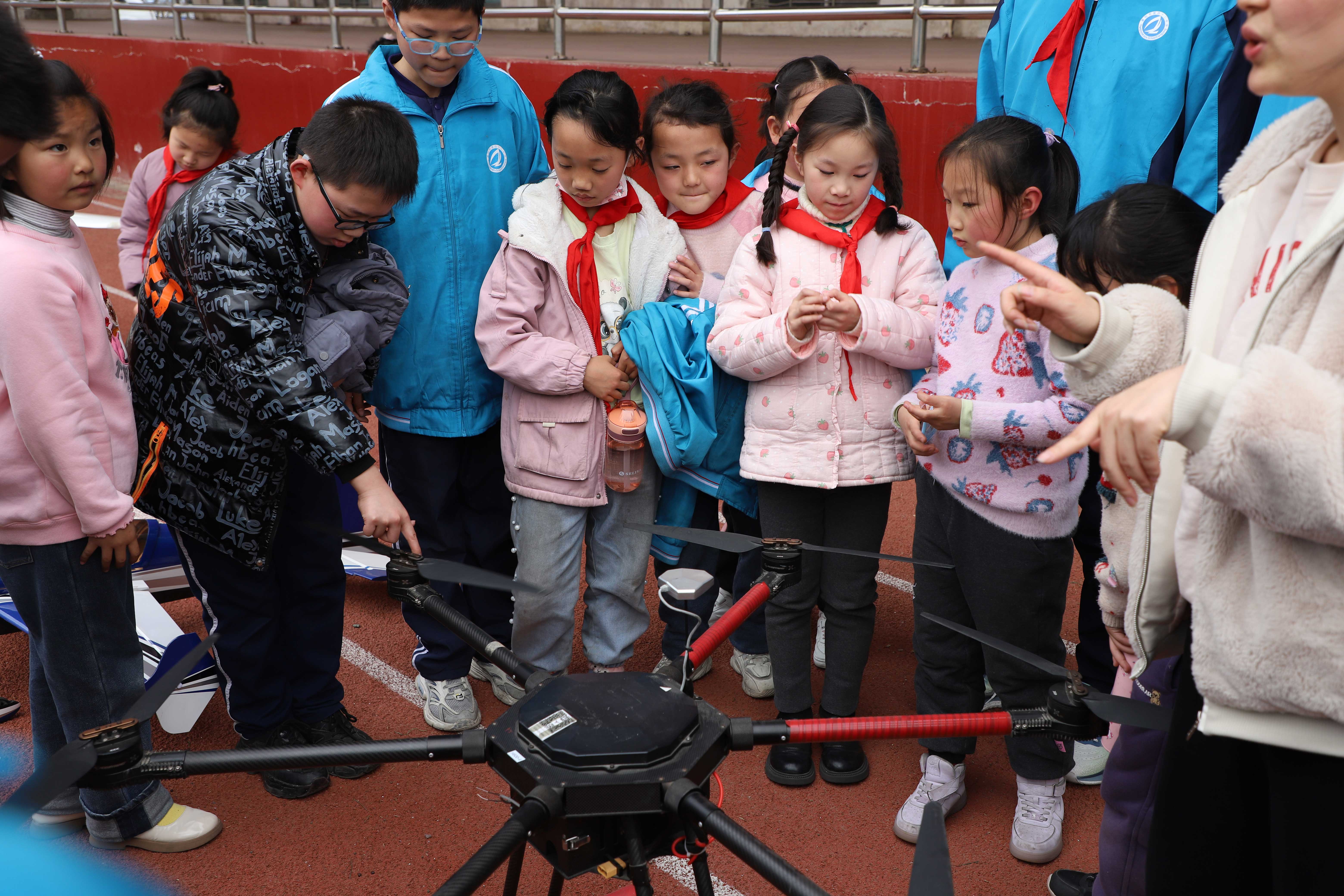 活動由飛行表演、特色機型展覽、科普課堂等系列活動組成。同學們近距離觀察無人機,向科普老師熱情提問,求知欲望溢于言表。同時,在“科技活動第二課堂”,科普老師給學生們帶來了精彩的航空知識講座,帶領同學們了解無人機的定義、飛行原理、操作方法以及廣泛用途。同學們積極和科普老師互動,通過“吹氣球”和玩“竹蜻蜓”的方式深入淺出地學習多旋翼無人機飛行原理。
